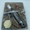Cesta Regalo “Un detalle, estuve allí, no preguntes” que incluye una botella de 250 ml de aove Oleosetin Legado ecológico y un Jabón Artesano elaborado como se hacía antiguamente con aceite de oliva virgen extra,”Los Jabones de Lumi”.